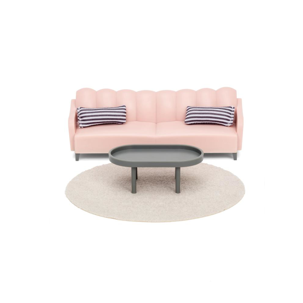 Lundby Dukkehus - Sofa sæt m/Puder, bord og tæppe