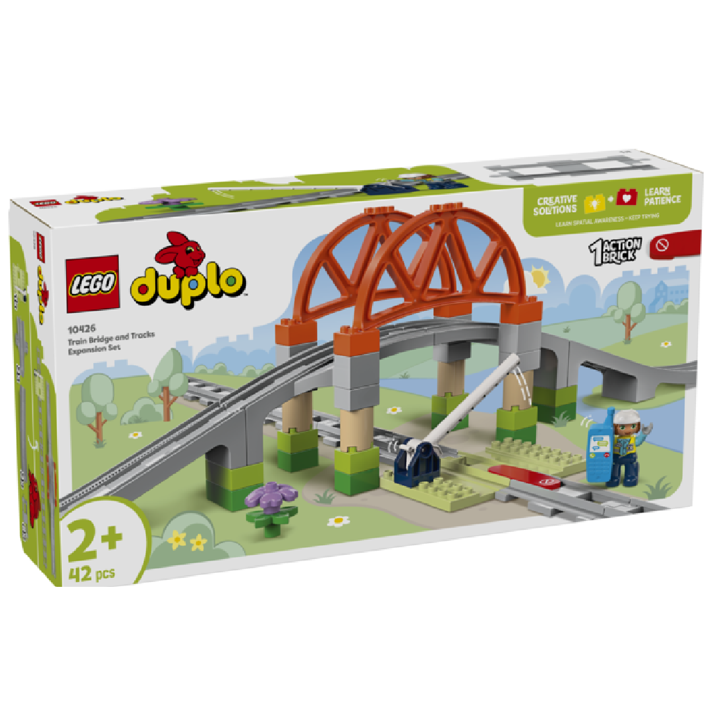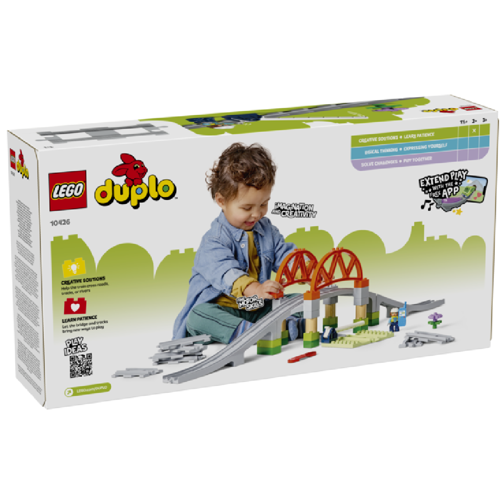 Legetøjssæt med togskinner – Små børn fra 2 år kan udvide deres LEGO® DUPLO® jernbaneeventyr og styrke deres indlæring med dette udvidelsessæt med togbro og spor