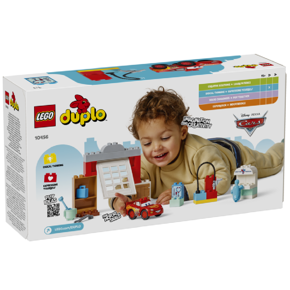 Byggesæt til små fans af Biler – De mindste kan lege mekanikere med LEGO® DUPLO® ǀ Disney og Pixar Biler-sættet Lynet McQueens besøg i Docs værksted, et byg-selv-legetøj til små børn