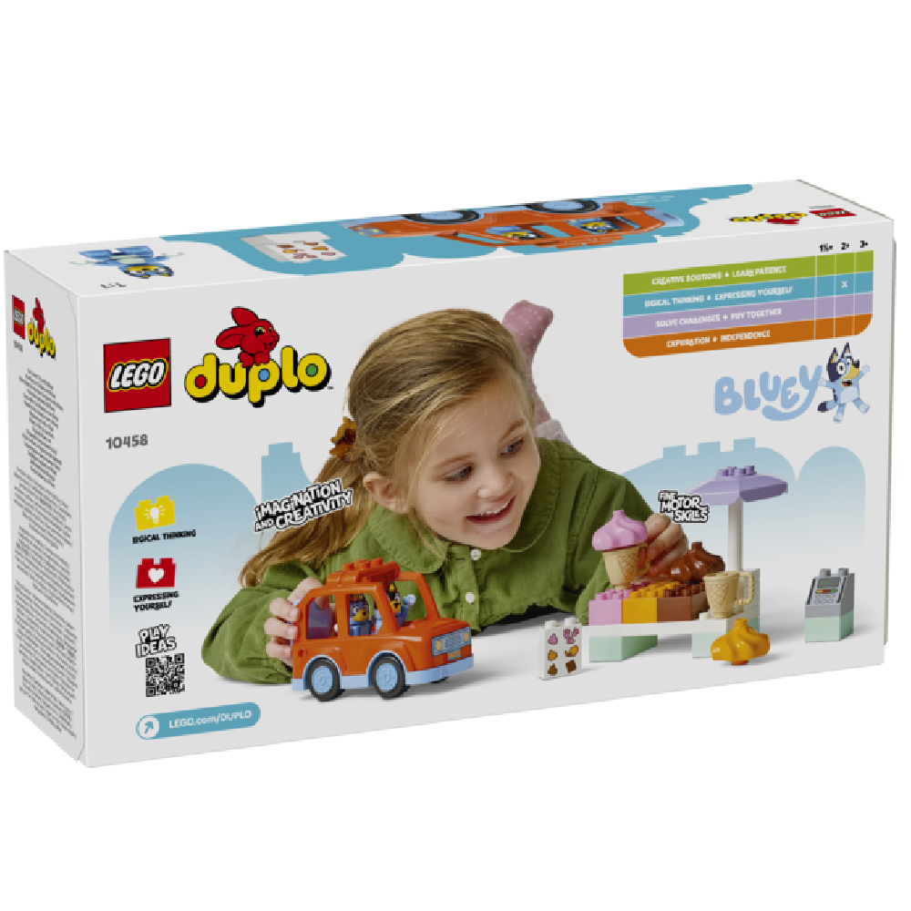 Legesæt med isbod og køretøj inspireret af tv-serien Bluey – Lad små børn køre ud på en tur i Heeler-familiens sjove verden med LEGO® DUPLO® legetøjet Is-udflugt med Bluey