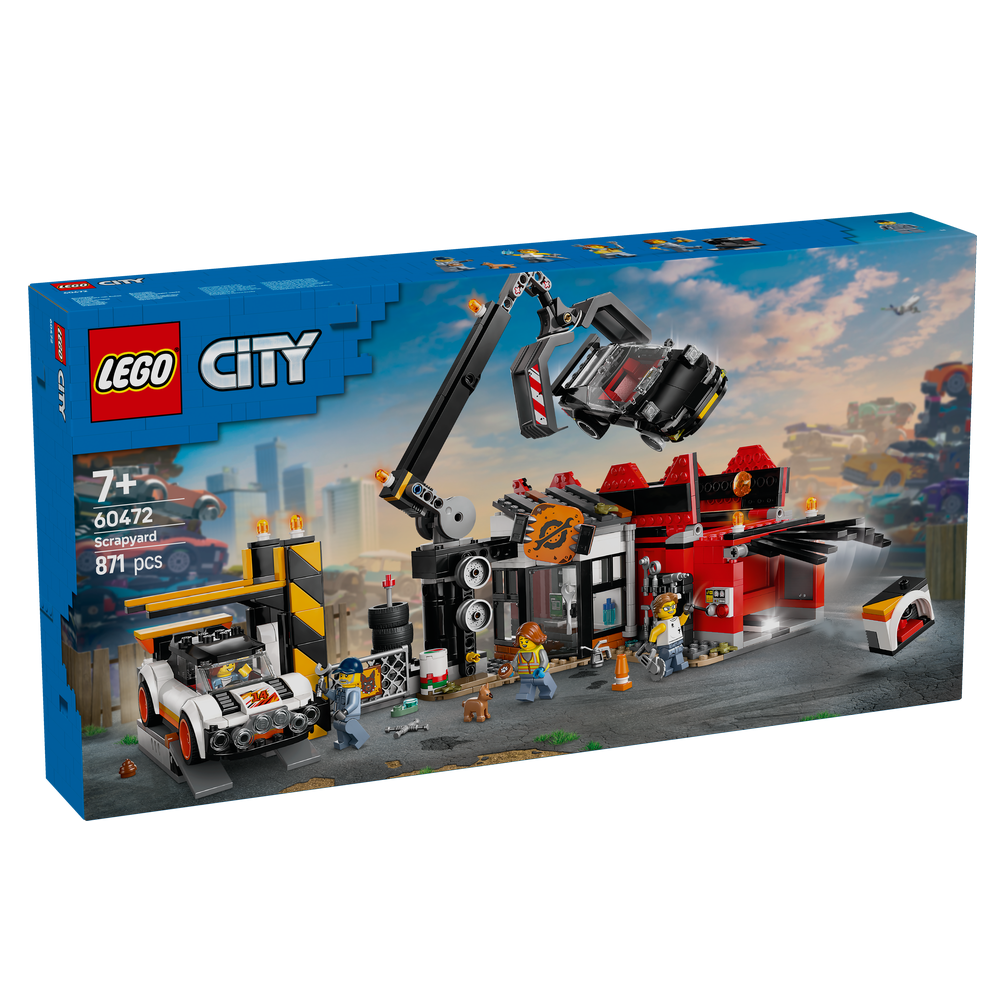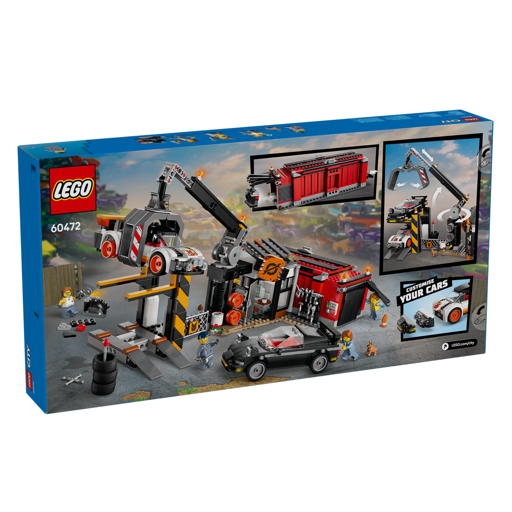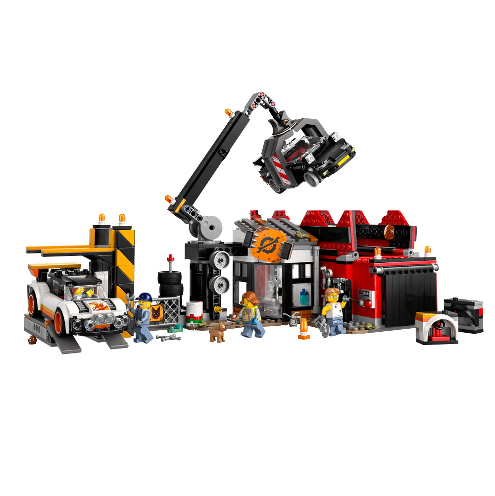 Børn kan dykke ned i en spændende verden af genbrug med det ophugnings-inspirerede LEGO® City legesæt Skrotplads med biler til børn fra 7 år. LEGO skrotpladsen er fyldt med sjove funktioner, bl.a. en fungerende kran med klo og en knusemaskine, der omdanner biler til terninger med et tryk på et håndtag. Børn kan også hjælpe med at afmontere dele fra de 2 klassiske 80'er-biler og sælge genbrugte dele, fælge og dæk i den gamle kontorbygning. Tilføj de 4 minifigurer af ophugningsarbejdere, og så kan den sjove leg begynde! Det kreative byggelegetøj indeholder trykt trinvis byggeguide samt digital 3D-vejledning i LEGO Builder appen. Her kan børn zoome ind på og dreje modeller i 3D, gemme sæt og holde styr på deres fremskridt, mens de bygger.