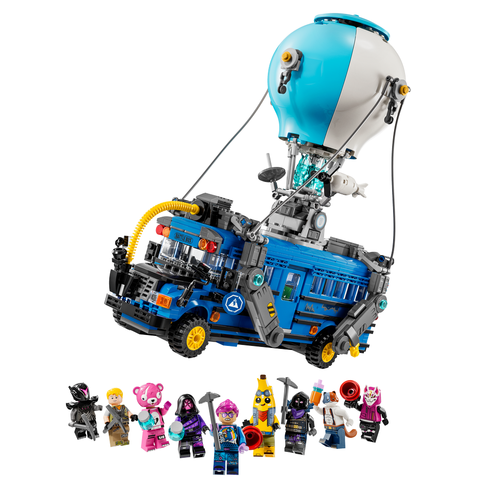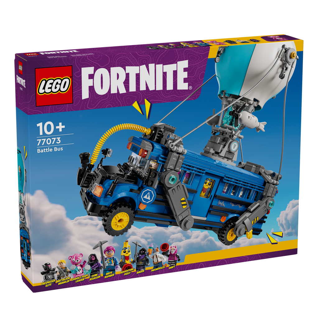 Fyr op under fantasien med det videospil-inspirerede LEGO® Fortnite® legetøj Battle Bus (77073) til fans fra 10 år. Byggesættet er baseret på det spændende videospil, så gamere kan skabe et cool Fortnite-køretøj. Fans kan rejse ind i den spændende LEGO Fortnite verden, når de bygger bussen, som har rullende hjul og aftageligt tag samt den øjeblikkeligt genkendelige luftballon. Men det er kun begyndelsen! Når bussen er færdig, kan de glæde sig over at udforske ikonisk tilbehør såsom Slurp Juice, en Grappler, Pickaxes og Slap Juice samt 9 minifigurer af ikoniske Fortnite-outfits. Figurerne bringer eventyret til live og kan sættes ind i bussen for at styrke den kreative rolleleg.