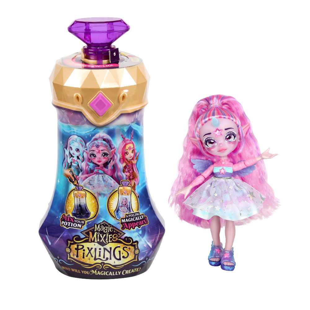 Magic Mixies Pixlings! Skab rigtig magi! Tilsæt de magiske ingredienser og mix eliksiren i flasken. Sig’ 'Magicus Mixus' og se hvilken Pixling, du har skabt!