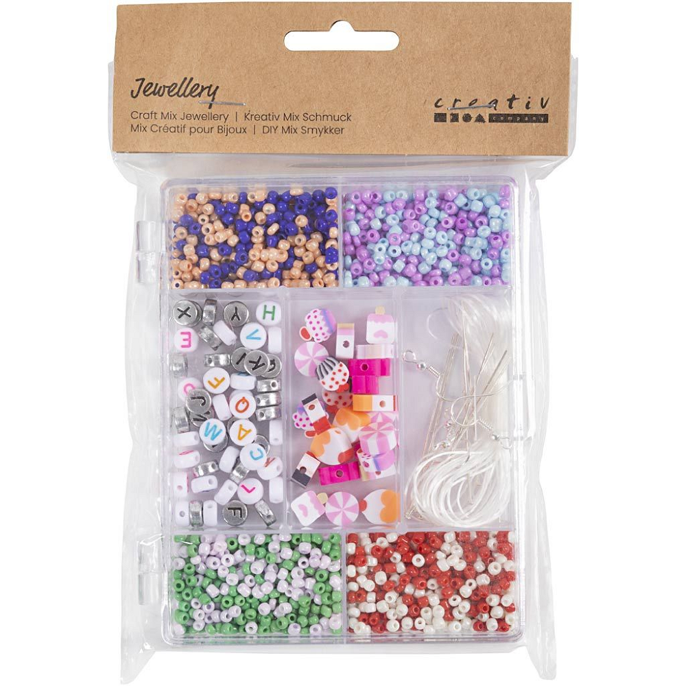 Vil du prøve kræfter som smykkedesigner, er dette kit perfekt. Her får du masser af perler, som du mixe og matche til de fineste smykker. Du kan skabe sjove farvekombinationer, tilføje trendy motivperler – eller skrive dit navn med bogstavperler, så smykkerne bliver ekstra personlige. De kreative muligheder er mange – og hvis du vil, kan du både lave din egen armbånd, halskæde og øreringe.