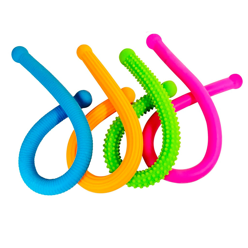 Fun Trend, Elastiske gummi nudler er sjove både at tviste, vride og bøje! Stræk dem helt op til 150 cm! 4 stk. i forskellige farver og teksturer. 5+ år