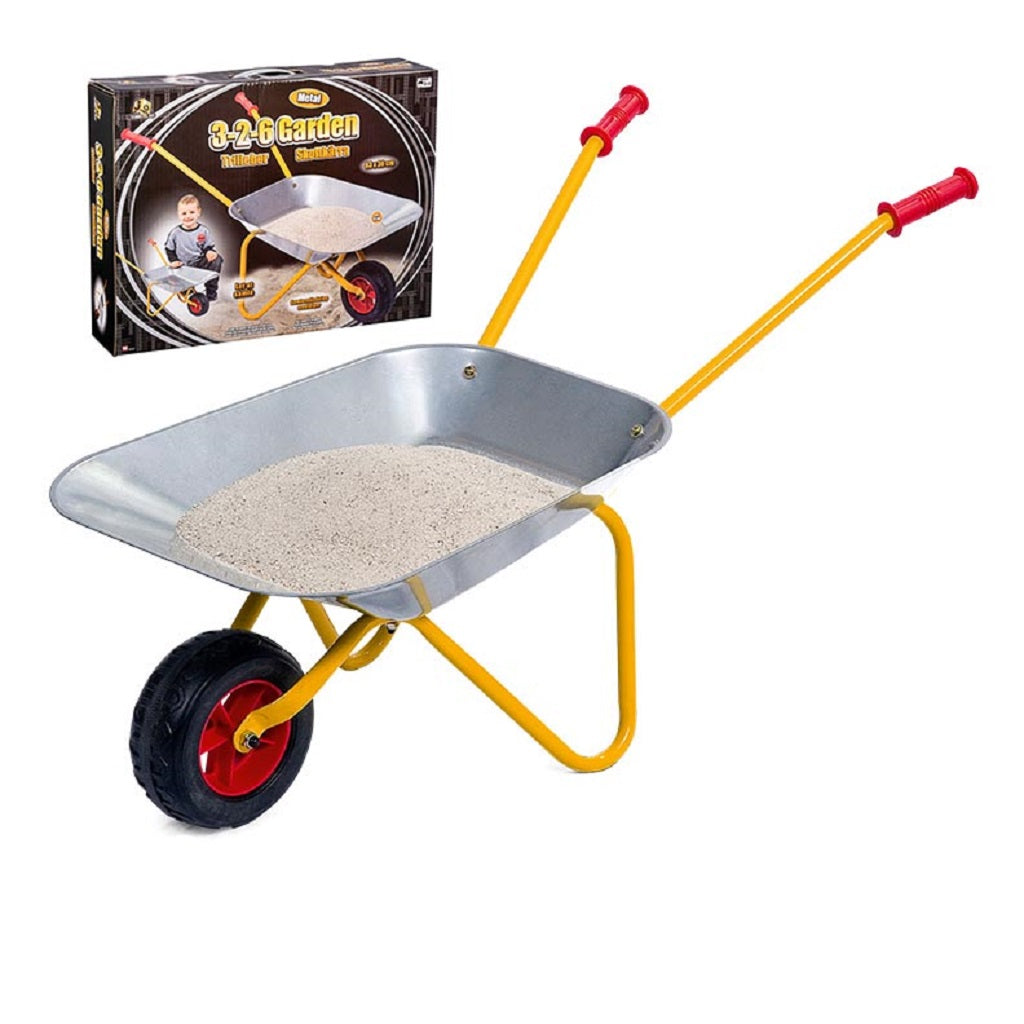 Trillebør i metal. Med plasthjul og gummigreb. Måler 77x41x42 cm.