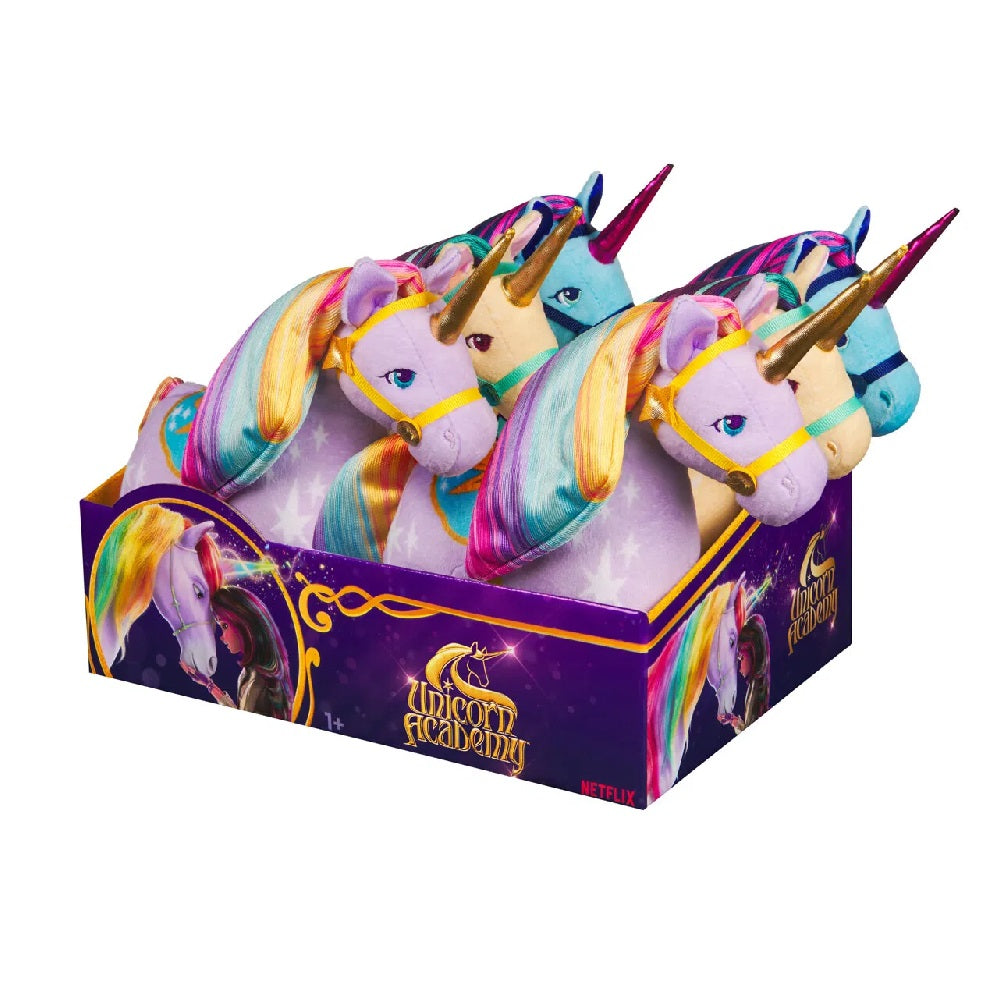 Træd ind i magiens verden med Enhjørningeakademiet, hvor venskab er det vigtigste! Leg med de søde 18 cm høje plys-enhjørninger, der bringer figurerne River, Leaf og Wildstar til live. Hver enhjørning har særlige detaljer fra NETFLIX-serien og de populære bøger, som viser deres magiske mærker og unikke farver. Disse detaljer gør legen endnu sjovere og hjælper dig med at finde på dine egne historier! Der er så mange måder at leve sig ind i Enhjørningeakademiets magiske eventyr!