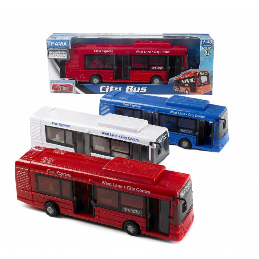 Teama Bus 23cm 3 ass farver: rød, hvid, blå