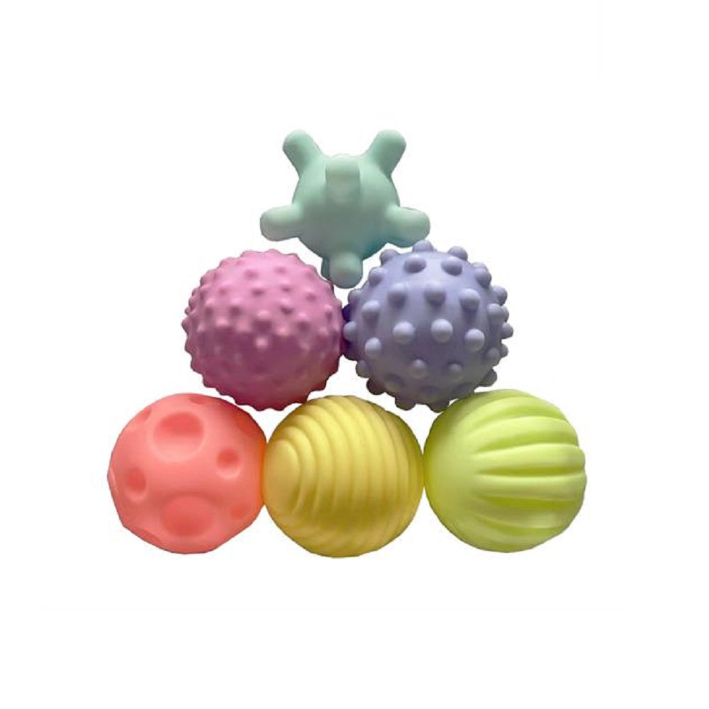 Indhold: 6 sansebolde med forskellige farver og overfladestrukturer