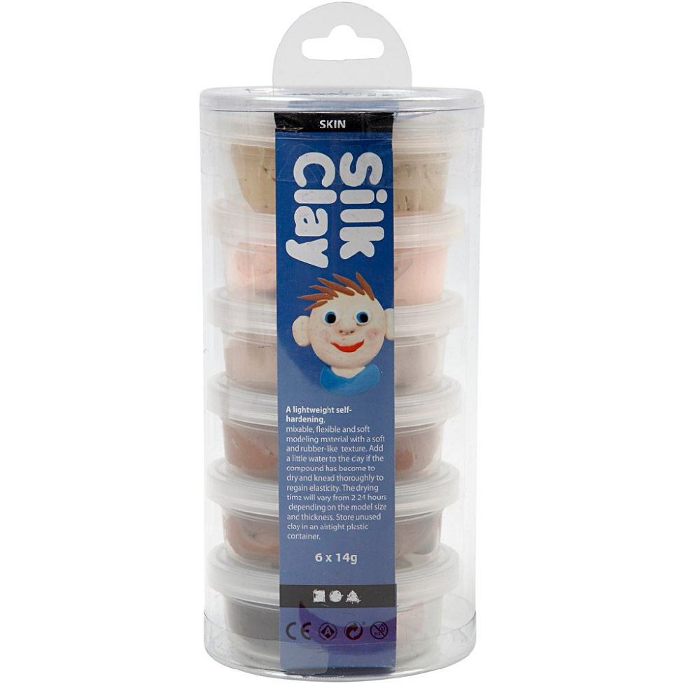 6 bøtter Silk Clay i hudfarver.