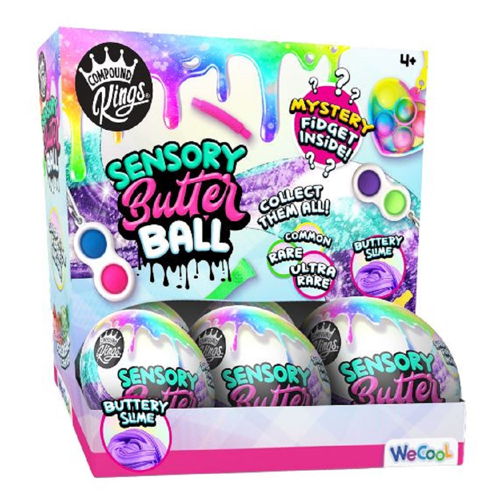 Compound Kings Sensory Butter Ball er fyldt med blød og super strækbar smøragtig slim og en overraskelses-fidget indeni. Ø10 cm. Fra 4+ år.