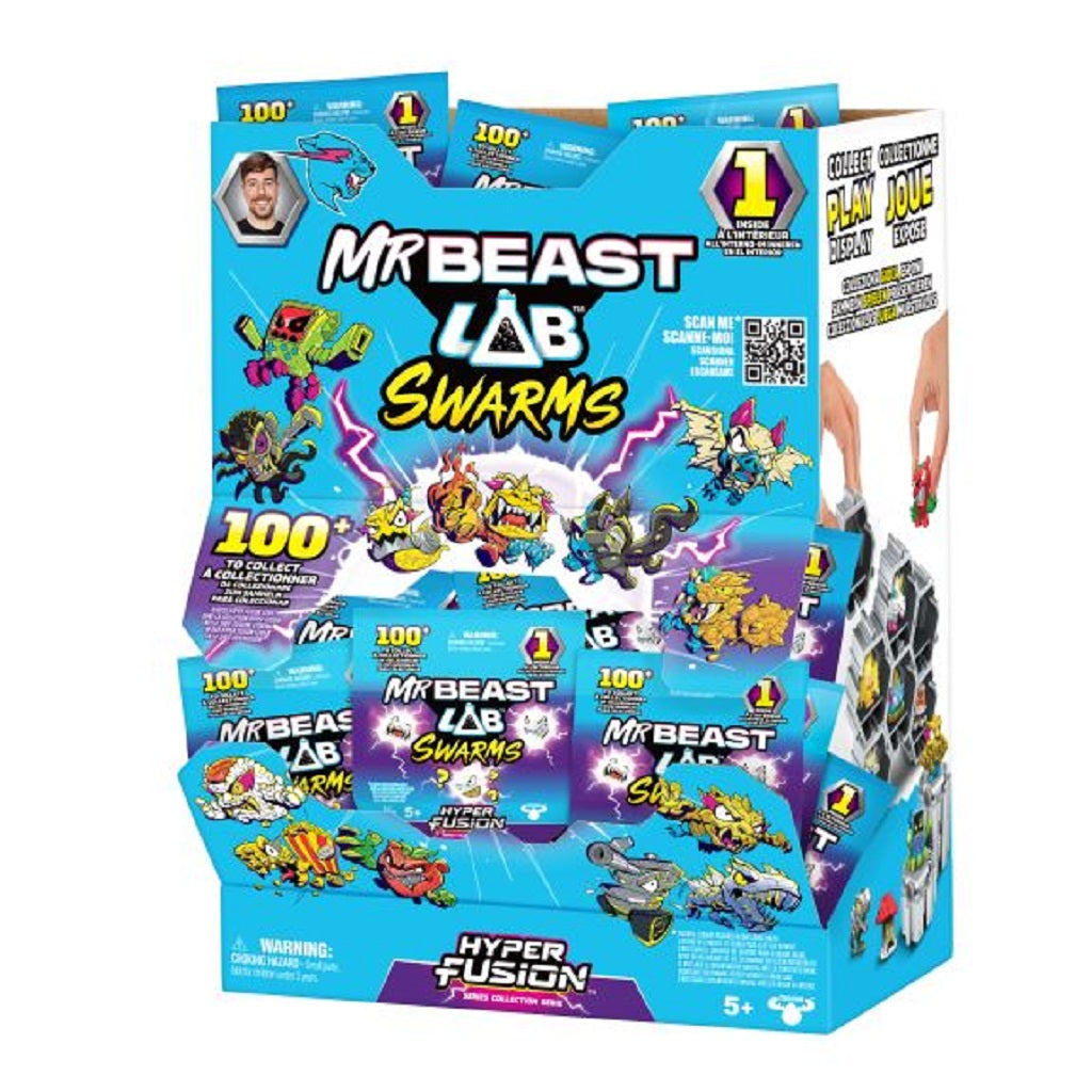 Åbn MrBeast Lab æsken og afslør 1 sej Hyper fusion Swarms figur og 1 figurpodie. Får du mon en sjælden? 100+ Mikro swarms figurer at samle på. 5+ år