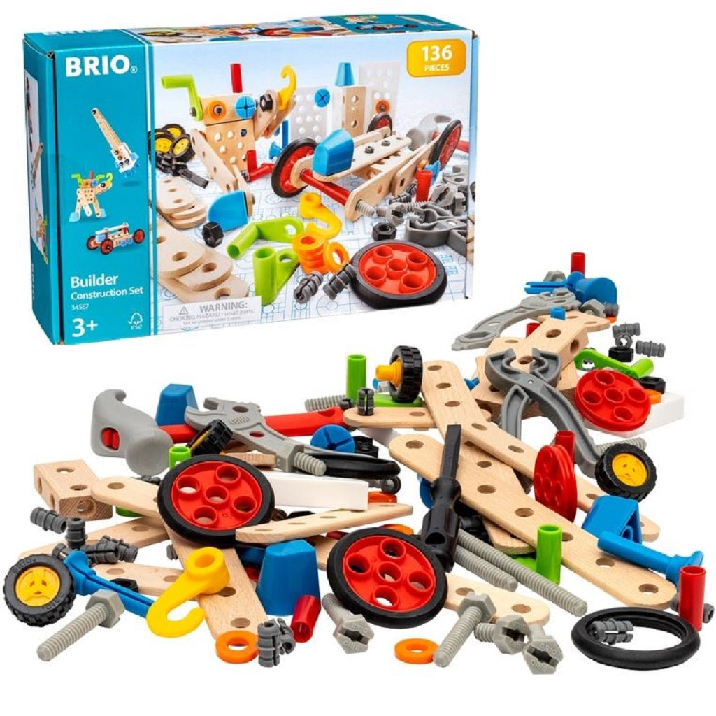 Design og byg dine egne konstruktioner. Med disse dele og værktøj kan du bygge næsten alt, din fantasi kan designe. En sjov måde at øve øje-hånd-koordination samt opmuntre kreativiteten på. Indeholder byggestykker, møtrikker, bolte, en hammer og en skruetrækker. Sæt med 136 dele. Fra 3 år.