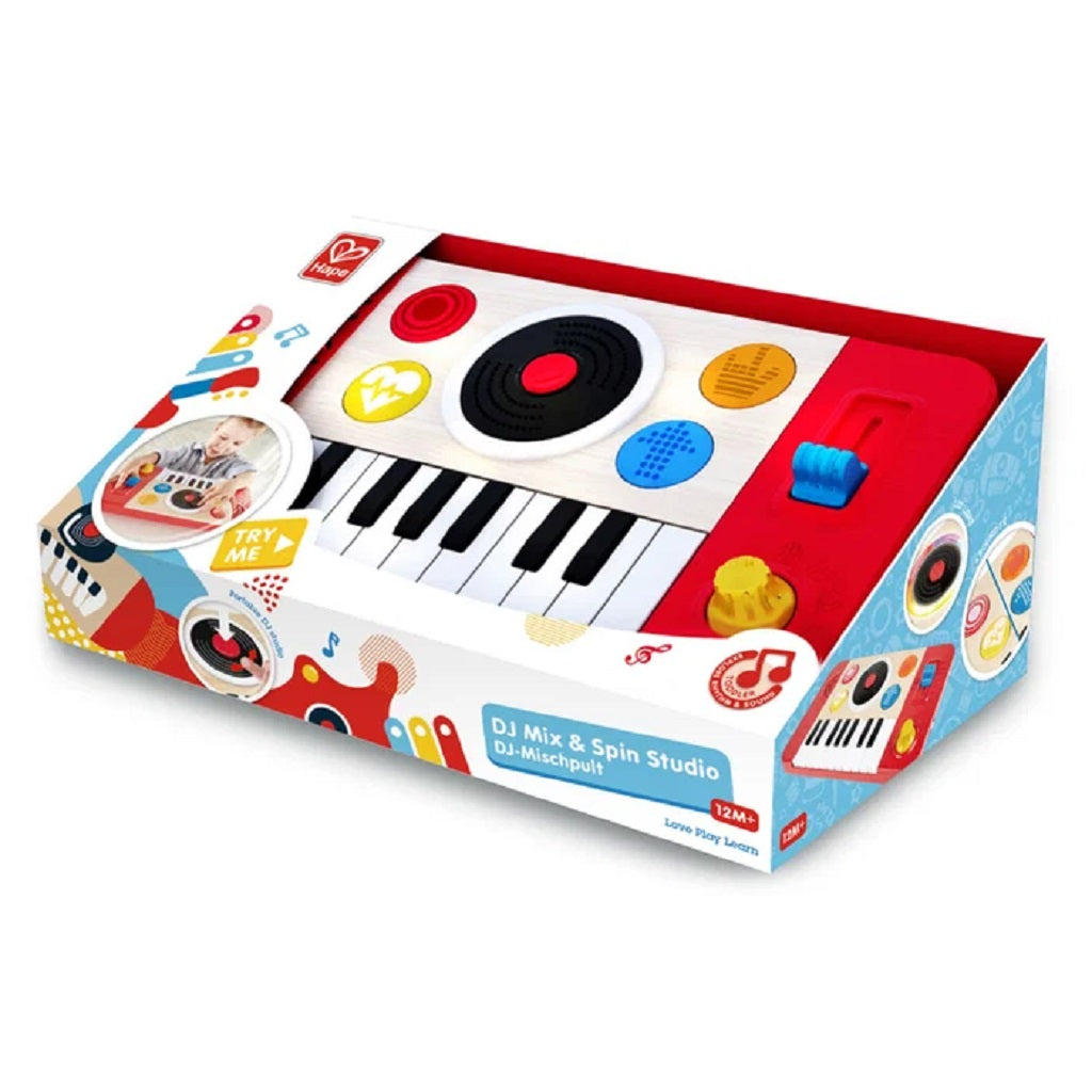 Hape’s DJ Mizer Studio opmuntrer de yngste musikere til at spille, lære og udforske deres musikalske evner. Spin Studio er den perfekte kombination af læring og leg. Børnene opbygger stærkere hukommelse, mens de udforsker de forskellige lyde og rytmer.