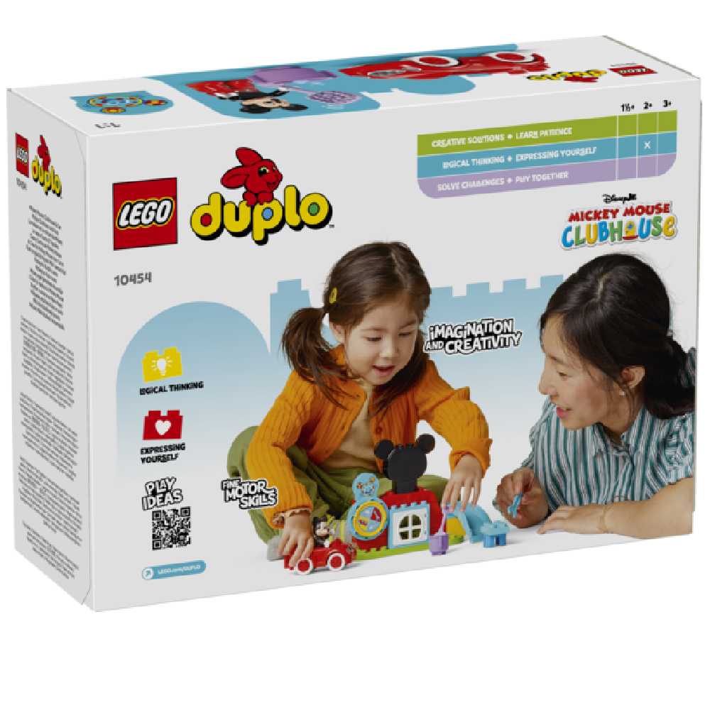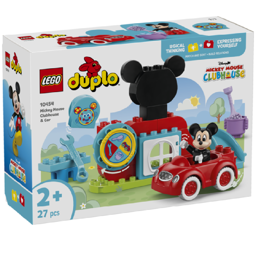 2 velkendte karakterer fra Disney Junior-serien Mickeys klubhus – Indeholder en LEGO® DUPLO® figur af Mickey Mouse og et Tingest-computerelement samt Mickey Mouses trofaste røde bil, der kan bygges