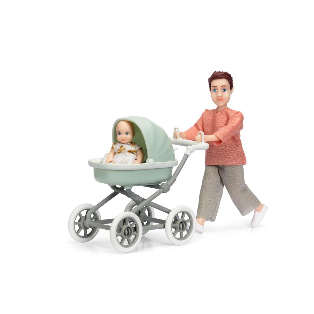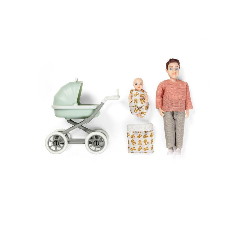 Lundby Dukkehus - Far og Baby i Barnevogn