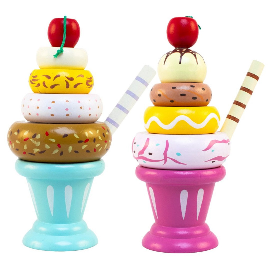 Isdessert stableeffekt. Hver kugle har sin egen flotte farve og pynt, der kan gøre alle lækkersultne. Isdesserten har et sugerør og et kirsebær på toppen. Indeholder i alt 4 kugler. Bemærk, at sugerøret er fastgjort til isen. Fremstillet af FSC 100% træ.