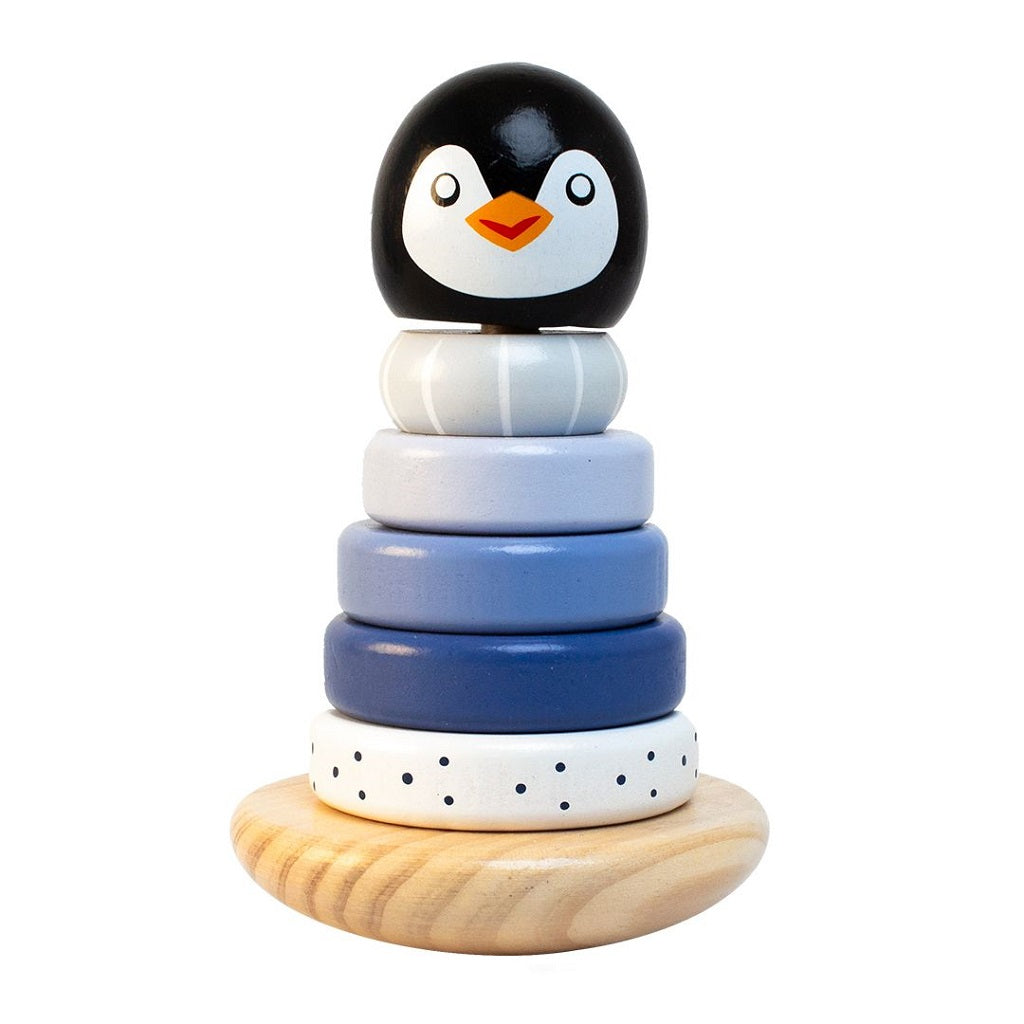 Smuk og dekorativt stabeltårn, som barnet kan få masser af timer til at gå med at stable igen og igen. Pastelfarver har en beroligende effekt og udformningen som pingvin er med til at give den personlighed. Super underholdende aktivitetslegetøj, der træner finmotorikken samt koordinering mellem øjne og hånd. Høj kvalitet og helt fri for skadelige stoffer og naturligvis malet med giftfri maling. 1+