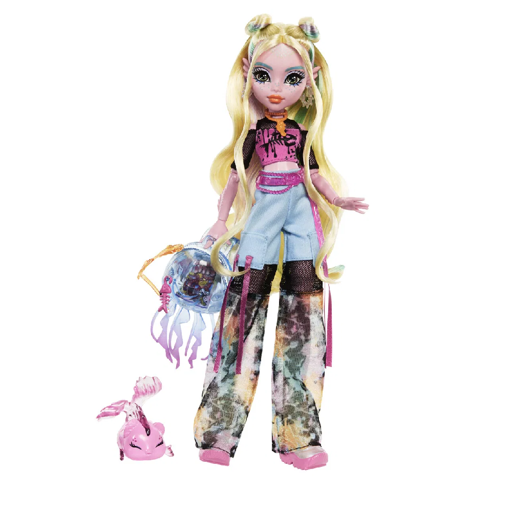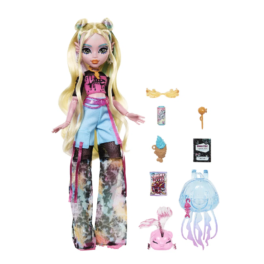 Denne Monster High-dukke er et virkelig fintastisk søuhyre. Lagoona Blue ser vandtastisk cool ud i hendes Y2K-inspirerede look. Hendes livlige piratfisk Neptuna ser også farligt sød ud som altid. Lagoona Blue-dukken har en bøjelig krop og havinspirerede dele til historiefortælling, og hun er en gysende god gave.
