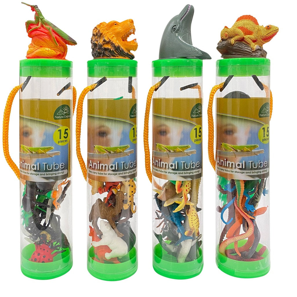 Animal Tubes indeholder hver 15 figurer af 4 forskellige dyr i Naturen.