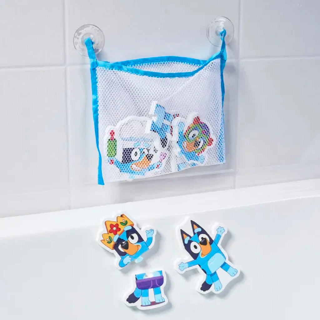 Gør badetid endnu sjovere med Bluey Badetidspuslespillet! Dette herlige sæt inkluderer store, bløde skumstykker, der nemt klæber til fliser, når de er våde, og sætter gang i fantasifuld leg og kreativitet. Med 8 dele, der kan kombineres på kryds og tværs, kan børn udforske fire unikke Bluey-positurer, hver med et sjovt outfit. Designet med opbevaring i tankerne, indeholder sættet en netpose med sugekopper, som holder alt organiseret og klar til det næste sprøjtende eventyr. Dette er blot ét af mange Toomies-produkter til førskolebørn, og denne tilføjelse til Bluey-serien styrker børns selvtillid i vand. Perfekt til små hænder og store fantasiuniverser: Bluey Badetidspuslespillet er et must-have for Bluey-fans og gør badetid til en fest! Tør delene grundigt af efter brug, og lad dem lufttørre i netposen. Rengør med antibakteriel opløsning eller vådservietter. Fra 18 mdr